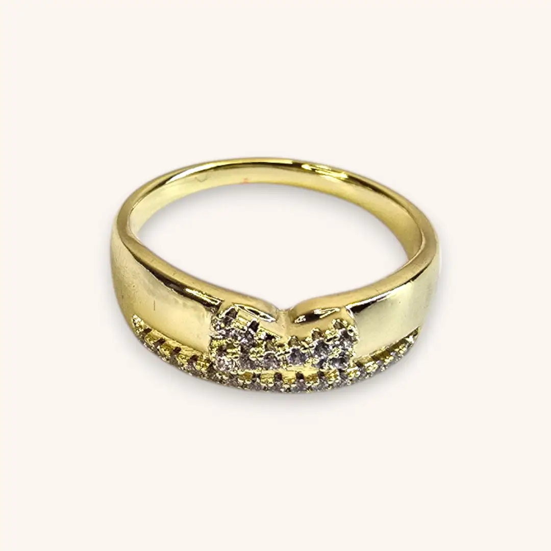 Cet anneau doré combine élégance et modernité avec ses motifs délicats et ses détails brillants. Une pièce polyvalente qui complète parfaitement vos looks, qu’ils soient casual ou sophistiqués.