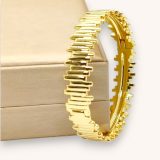 Ce bracelet se distingue par son design architectural unique, avec des détails dentelés qui apportent une texture captivante. Conçu pour les amateurs de styles contemporains, ce bijou reflète l’audace et l’élégance. Parfait pour affirmer votre personnalité et rehausser votre look avec une touche moderne et sophistiquée.
