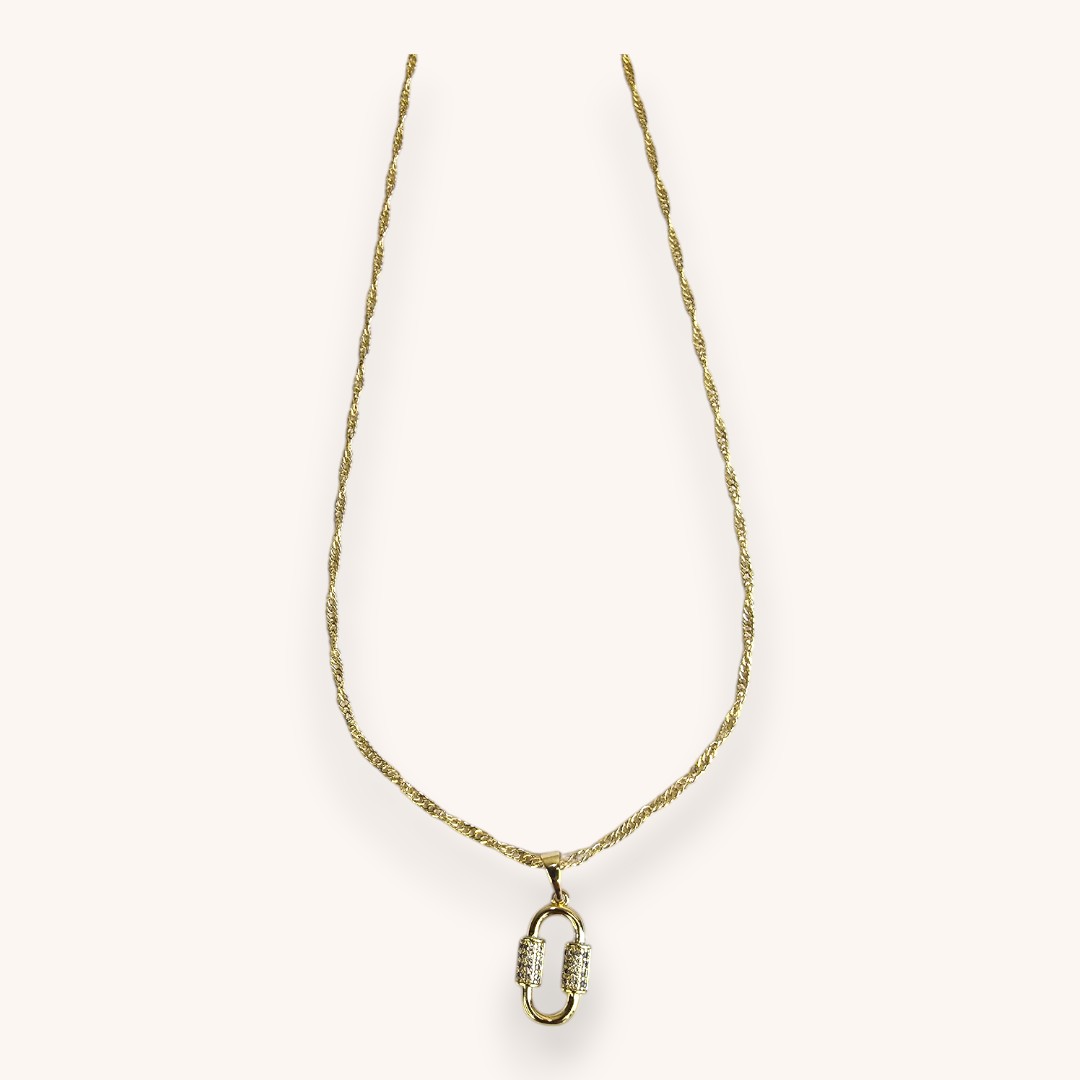 Ce collier raffiné est orné d’un pendentif au design intemporel, rehaussé de détails scintillants qui capturent la lumière à chaque mouvement. Une pièce parfaite pour illuminer votre décolleté et compléter vos tenues.