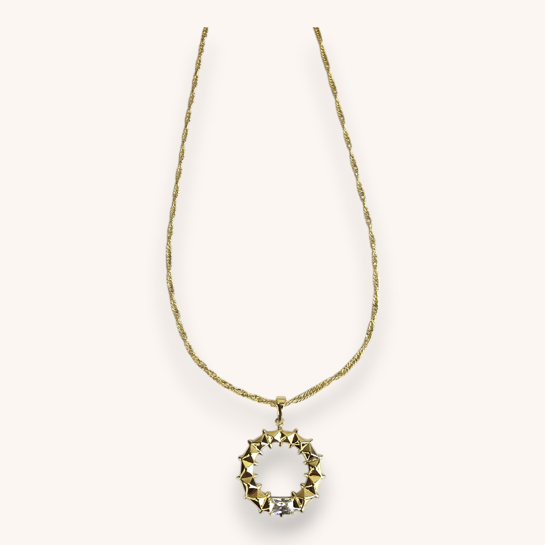 Ce collier doré met en valeur un pendentif lumineux à la forme étoilée. Un bijou idéal pour attirer les regards, parfait pour toutes les occasions spéciales