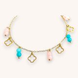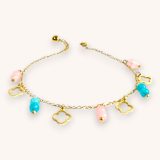 Cette chaîne de cheville associe des perles colorées d’un rose doux et d’un bleu éclatant à des charms en forme de fleurs dorées. Avec son design bohème et raffiné, elle apporte une touche de fraîcheur et de féminité à vos tenues, que ce soit à la plage, en soirée ou pour une balade estivale. Laissez vos pas scintiller d’élégance et de gaieté.